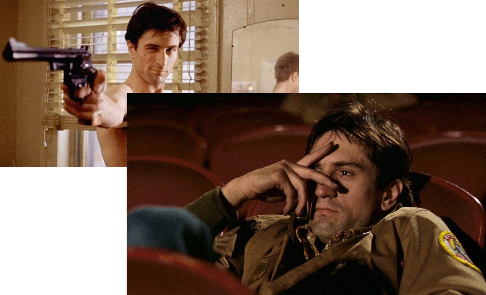 On the lighter side, here's some work I've done in homage of Scorsese's film 'Taxi Driver'; you're probably aware of DeNiro's famous 'are you talking to me?' scene.
