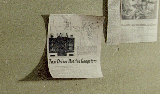 At the end of the film when the plot concludes, I couldn't help but notice this drawing in the newspaper on the wall. This - I am fascinated by. A plan in perspective view illustrating the layout of the crime scene - a not so obvious architectural drawing utilized through the medium of journalism to better portray the events that have taken place.